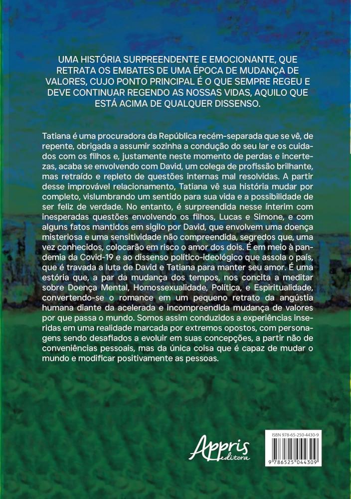 É em meio à pandemia e ao dissenso político-ideológico que é travada a luta de David e Tatiana para manter o amor. Conhecedor dos preceitos de justiça e expectador de tantas mazelas sociais, o autor conclama as pessoas a refletirem sobre temas como saúde mental, diversidade, política, e espiritualidade, e revela um pequeno retrato da angústia humana diante da acelerada e incompreendida mudança de valores por que passa o mundo.