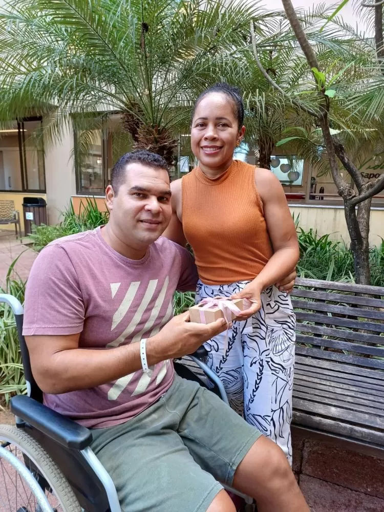 “Aprendi de tudo um pouco, a acompanhar os banhos, cuidados na cama, práticas de sentar. Foi muito importante para poder continuar a recuperação dele em casa. Já tinham nos avisado que não seria algo muito rápido. Hoje, ele está muito melhor. Passou pelo processo de cadeira de rodas, depois andador e agora está com muletas. Está evoluindo muito bem graças a Deus.”, conta Cristiane.