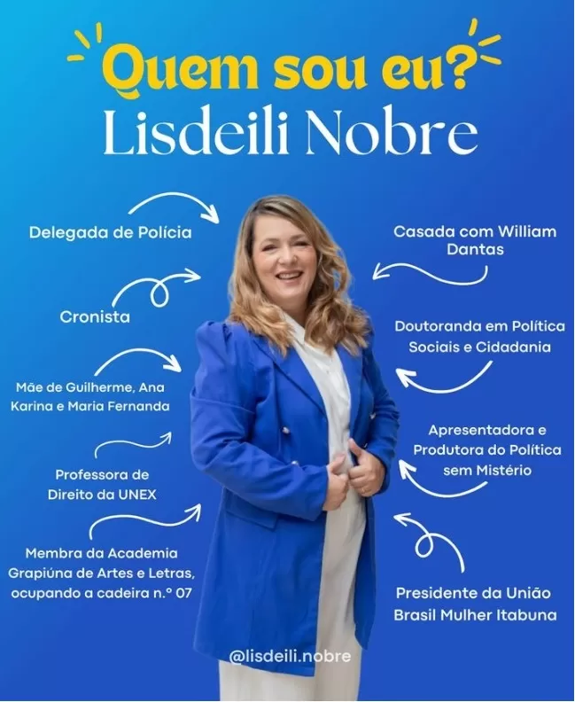 Além de sua atuação profissional, Lisdeili Nobre é conhecida por sua participação em eventos e debates públicos, onde discute temas relevantes para a comunidade, como segurança pública, educação e direitos humanos. Sua candidatura promete ser um marco na política local, com propostas inovadoras e uma abordagem centrada no bem-estar de todos os cidadãos de Itabuna.