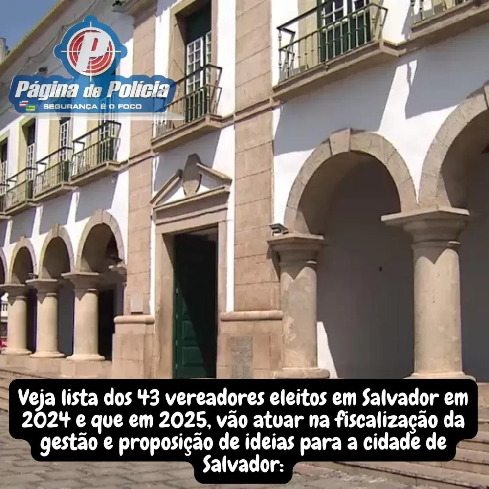 Veja lista dos 43 vereadores eleitos em Salvador em 2024 e que em 2025, vão atuar na fiscalização da gestão e proposição de ideias para a cidade de Salvador: