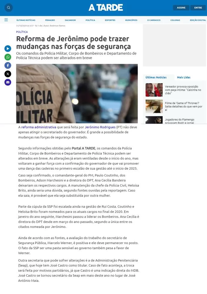 Texto da matéria publicada no Jornal A Tarde edição de 31.10.2024