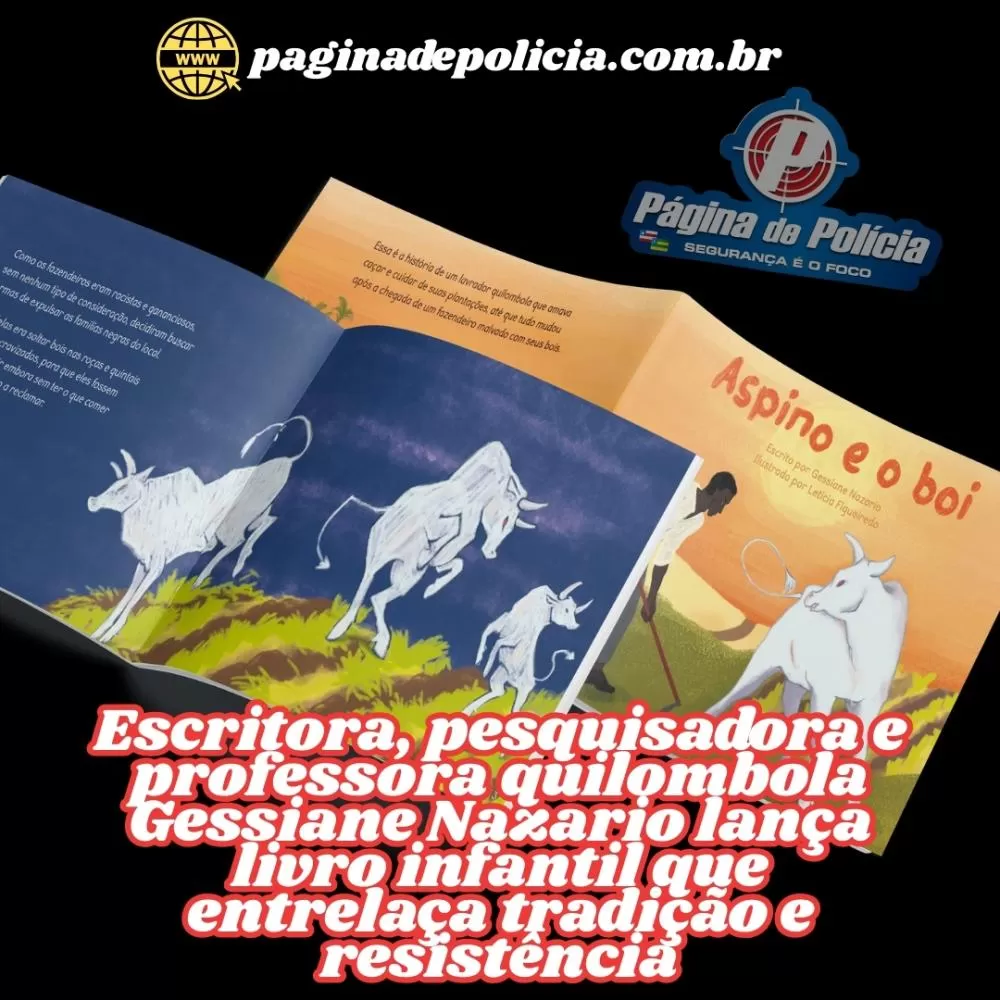 “Aspino e o boi” (25 págs.), obra infantil da pesquisadora, professora e escritora Gessiane Nazario (@gessianenazario), narra a resistência do protagonista frente às investidas dos fazendeiros, que desejavam expulsar as famílias quilombolas de suas terras. Inspirado em histórias orais da comunidade quilombola de Rasa, em Armação dos Búzios (RJ), o livro, publicado pela Sophia Editora (@sophiaeditora), conta com ilustrações de Letícia Figueiredo e tem como intenção preservar a memória quilombola. O lançamento foi na Festa Literária Internacional de Paraty (Flip) de 2024.