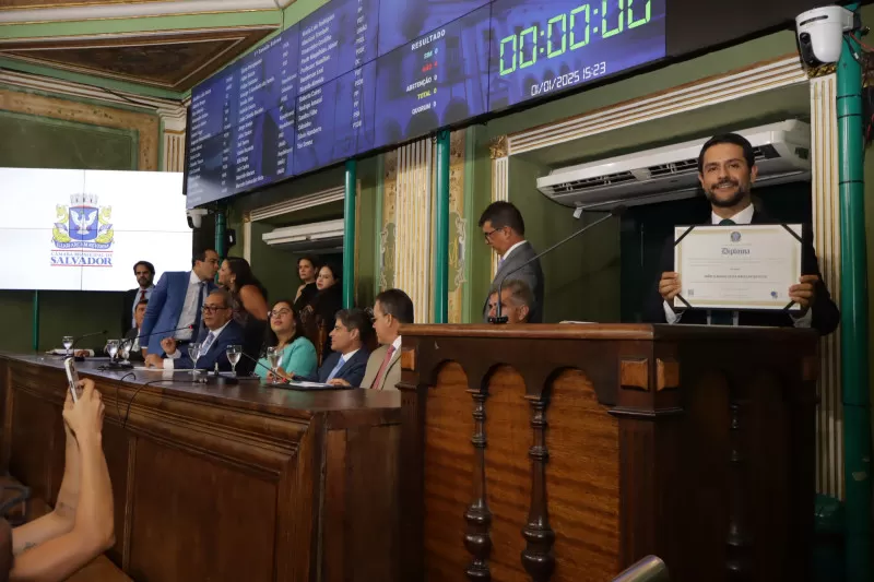 Carlos Muniz, que foi presidente da Câmara no biênio 2023-2024, completou: “Aos vereadores que iniciam seu primeiro mandato, desejo sucesso e sabedoria nessa nobre missão; aos demais colegas, que juntos sigamos fortalecendo o papel desta Casa na defesa dos interesses de nossa população. Que possamos honrar a confiança depositada em cada um de nós com trabalho, respeito e resultados concretos para Salvador”.