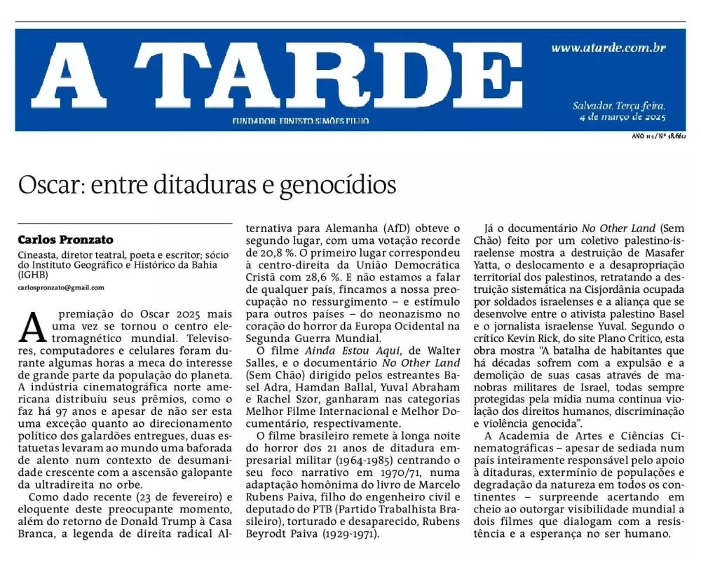 Artigo quinzenal publicado no jornal A Tarde, da Bahia. 04.03.2025.