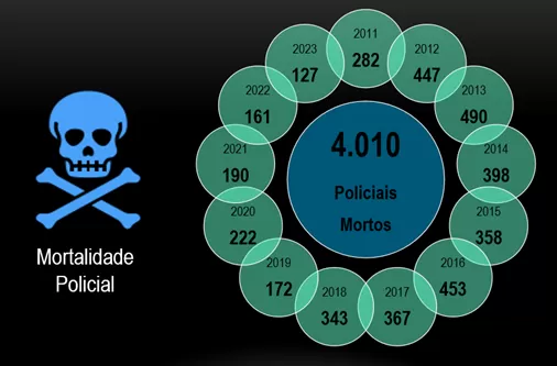 Entre os anos de 2011 e 2023, a estatística apresentada pelo Fórum Brasileiro de Segurança Pública apontou que 4.010 policiais foram assassinados no Brasil nesse período.