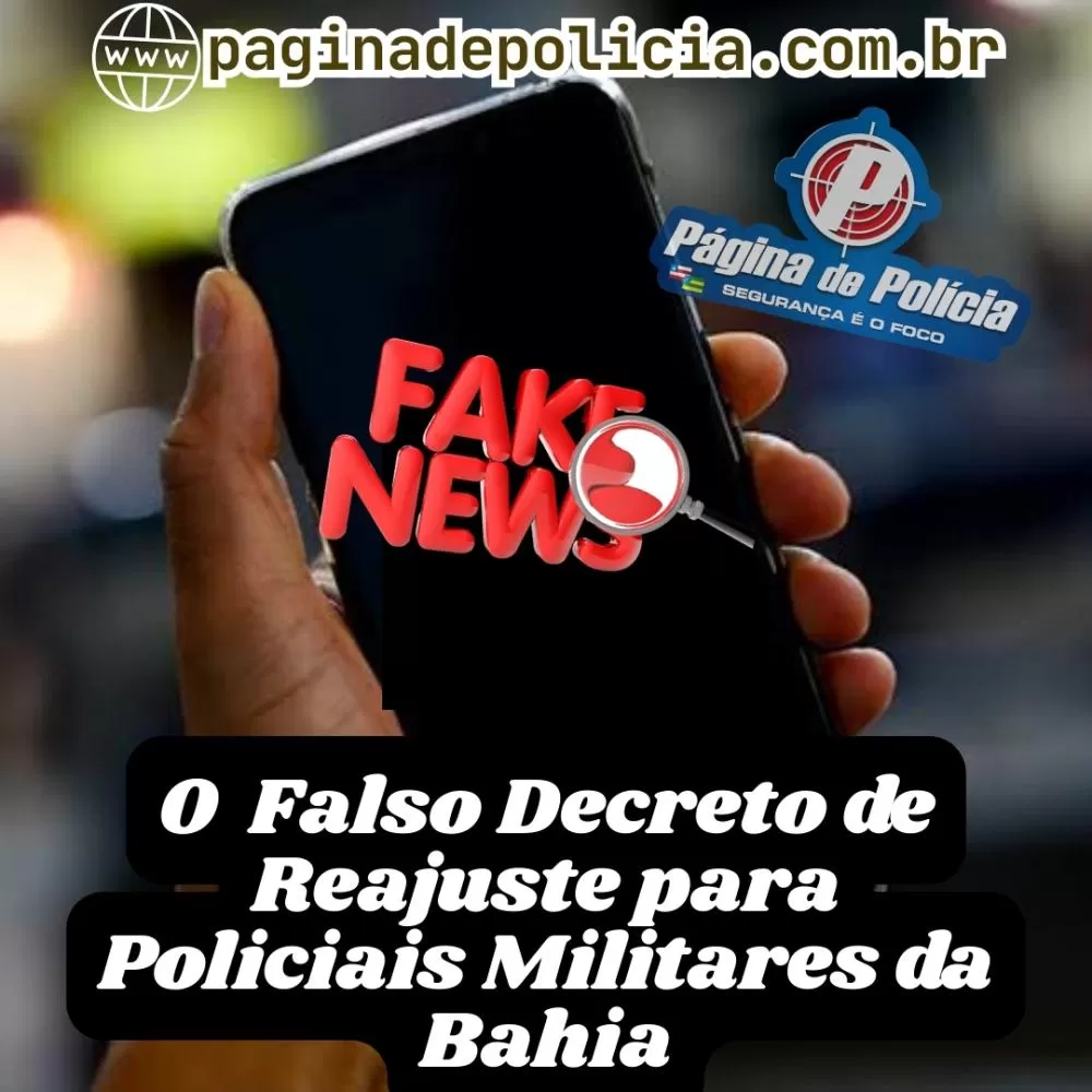 O Falso Decreto de concessão de reajuste e vantagens para Policiais Militares da Bahia. Circula em grupos de WhatsApp de policiais civis e militares um texto supostamente assinado pelo governo do Estado da Bahia, anunciando um reajuste salarial e benefícios para os PMs.