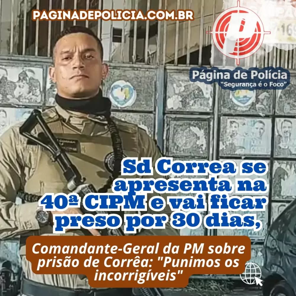 Sd Correa se apresenta na 40ª CIPM, prisão por 30 dias, gera polêmica e acusações de perseguição política. Comandante-Geral da PM sobre prisão: “Punimos os incorrigíveis’”