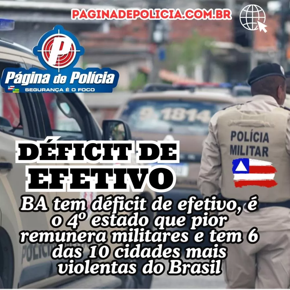 BA tem déficit de efetivo, é o 4º estado que pior remunera militares e tem 6 das 10 cidades mais violentas do Brasil