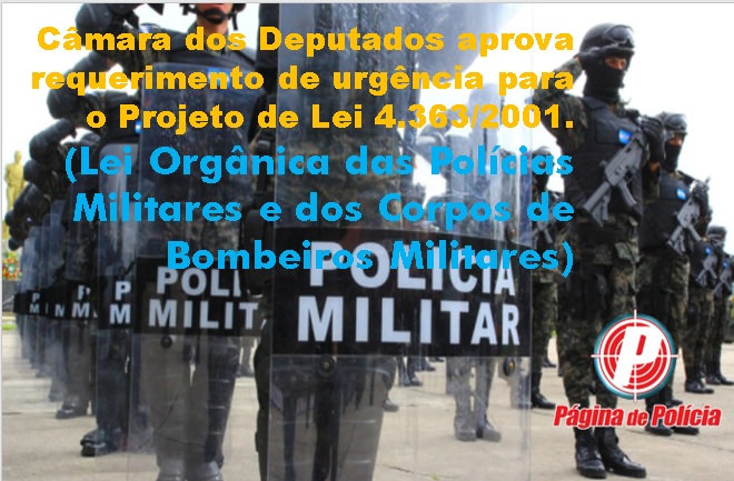 Câmara aprova requerimento de urgência para o Projeto de Lei 4.363/2001, do Executivo, que cria a Lei Orgânica das PMs e dos Corpos de Bombeiros Militares