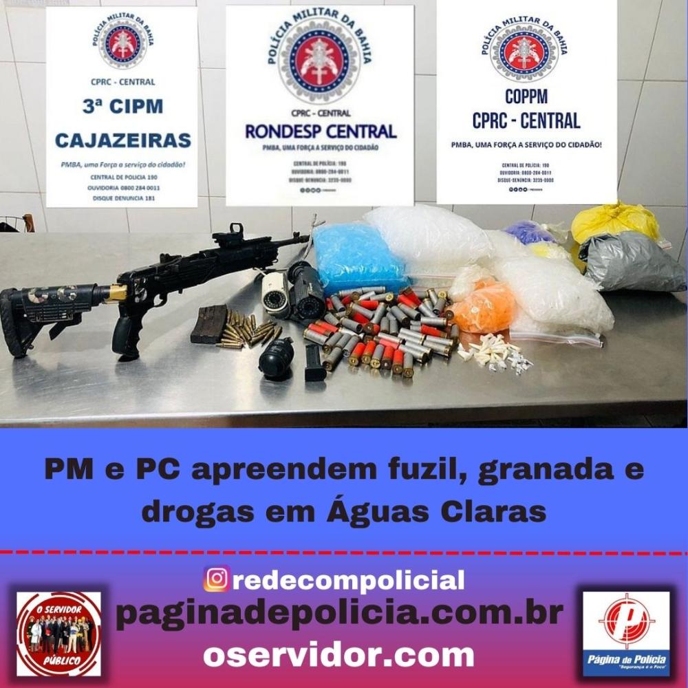 PM e PC apreendem fuzil, granada e drogas em Águas Claras