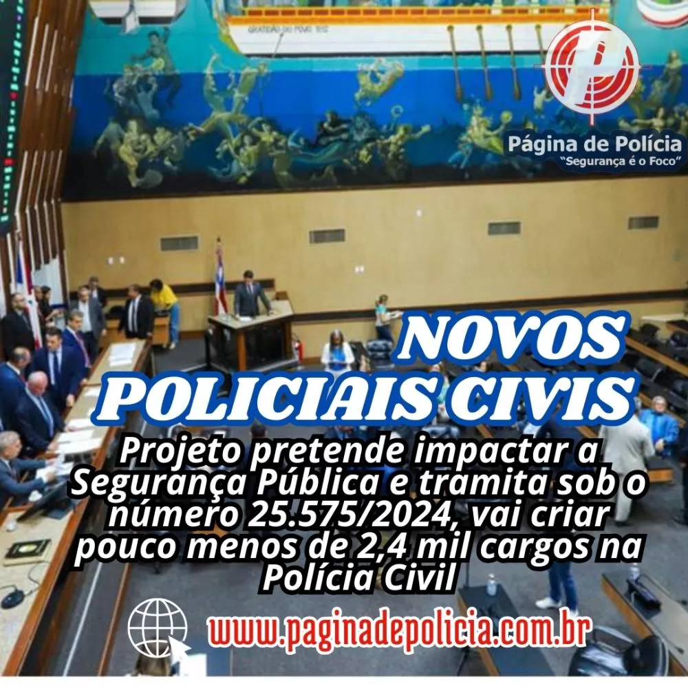 O projeto que pretende impactar a Segurança Pública está tramitando sob o número 25.575/2024 e vai criar pouco menos de 2,4 mil cargos na Polícia Civil, distribuídos em 500 vagas para delegado, o que representa quase metade dos atuais 1,2 mil delegados. Também serão acrescidos 1,46 mil novos investigadores e 437 escrivães.