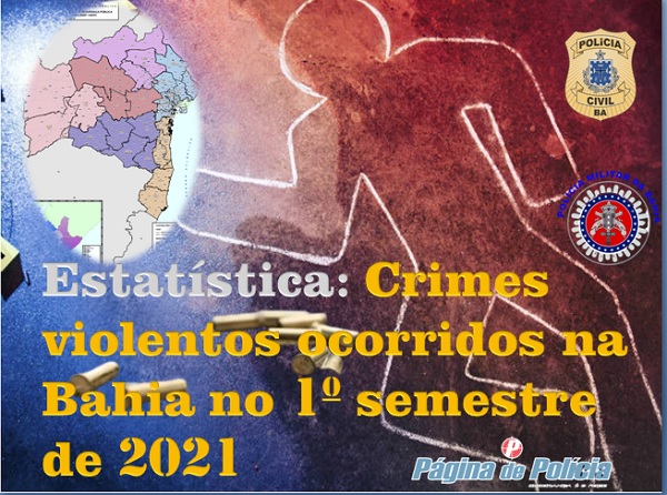 SSP/BA: Estatística oficial, referente crimes violentos ocorridos no Estado no 1º semestre de 2021.