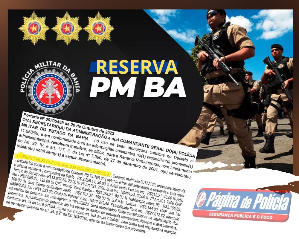 Coronel da Polícia Militar da Bahia vai para reserva remunerada com proventos de mais de R$ 70 mil