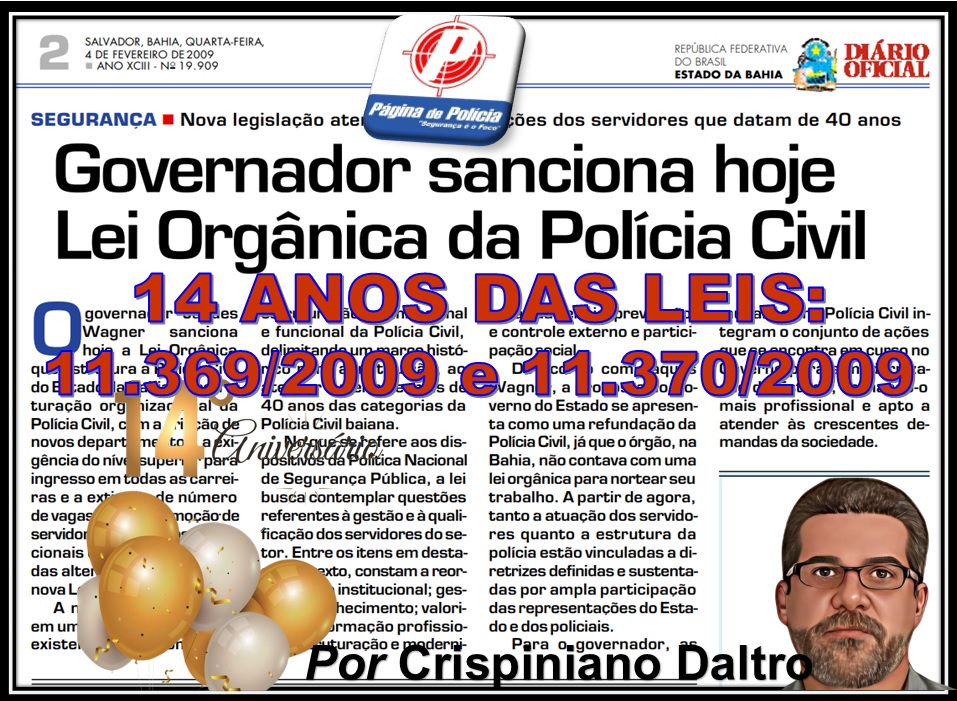 HOJE É ANIVERSÁRIO DE 14 ANOS DAS LEIS: 11.369/2009 e 11.370/2009