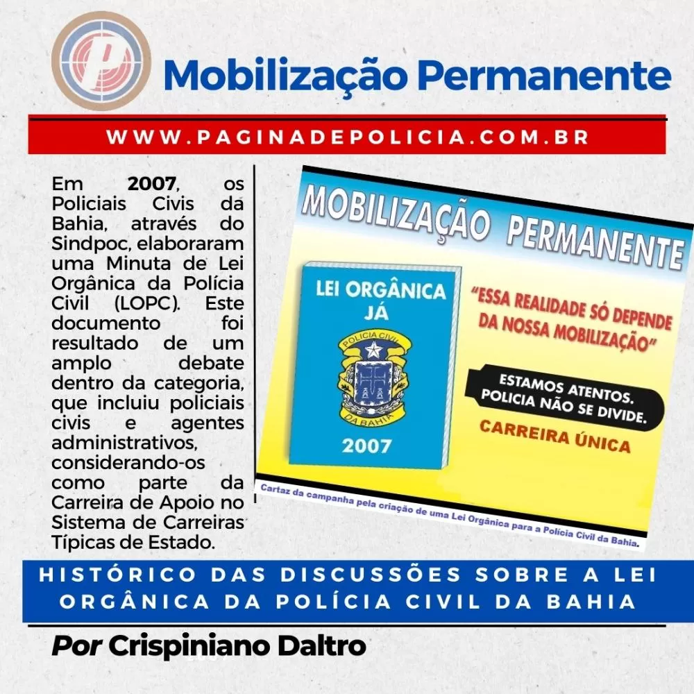 Proposta de Lei Orgânica para a Polícia Civil/Ba, apresentada em 2007 ao governo do Estado, pela direção do Sindicato à época.