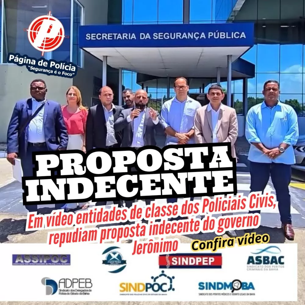 Em vídeo entidades de classe dos Policiais Civis da Bahia, repudiam proposta indecente do governo.