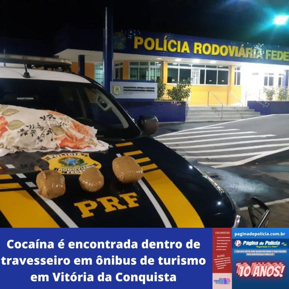 Cocaína é encontrada dentro de travesseiro em ônibus de turismo em Vitória da Conquista